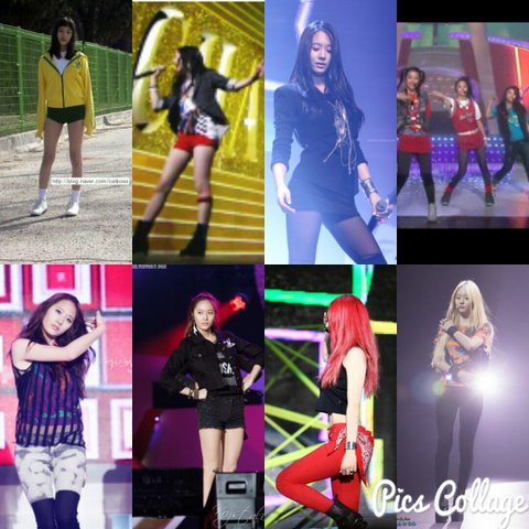 라차타,초콜릿럽,츄 제외하고 전부다 1년 주기의 사진들이고 피노키오랑 일숔 사이에는 시트콤 촬영+김연아의 키스앤 크라이 촬영(상대방을 배려해서 40kg까지 뺐다고 함)+핫 써머 활동이 있었고 일숔이랑 첫 사랑니 사이에는 어메이징 f(x)라는 리얼리티를 촬영했고 첫사랑니랑 레라 사이에는 상속자들 촬영+제크 촬영을 함 (제크 활동 뮤비까지 찍었다고 함) 레라랑 포월즈 사이에는 내겐너무사랑스러운 그녀 촬영을 했고 촬영 중간에 슴콘 참석하다가 실신함 포월즈 이후에는 드라마,영화 촬영이 계속되느라 한국에 몇달 동안 입국을 못했고 에프엑스 콘서트 투어도 진행함