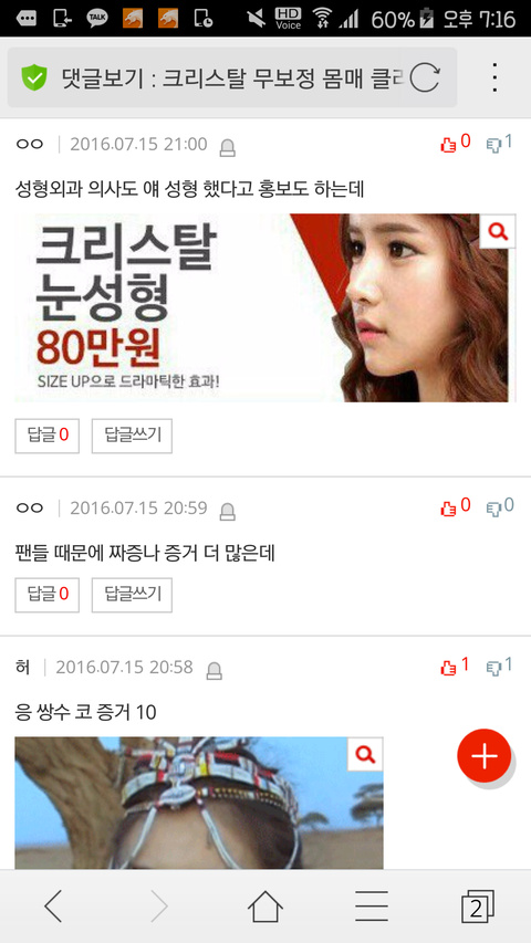 최근 크리스탈을 까는 글들이 계속 올라오고 까는 목적이 아닌 것 같은 글 역시 댓글로 크리스탈을 까댐ㅇㅇ