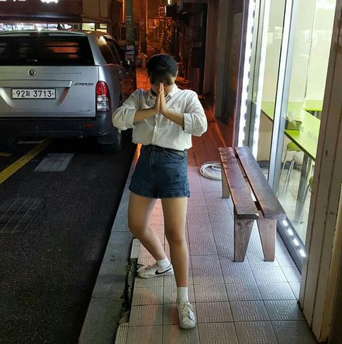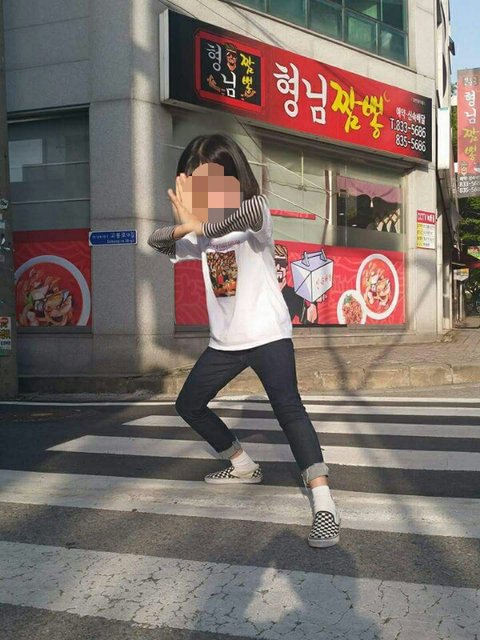 빨강하양 줄무늬 반팔에다가 연청 반바지 처피뱅에 칼단발 아디다수 하얀색 캡모자까지 쓰면 완성 입술도 조카 빨갛게 쳐바르고 양말은 하얀색에 병맛인 캐릭터가 그려져있는 긴양말을 조카 올려서 신는다 그리고 배경은 놀이터 _일진인척 쭈구려 앉아 꽃받침을하고 머리위에는 병 신 같은 하트3개를 띄운다