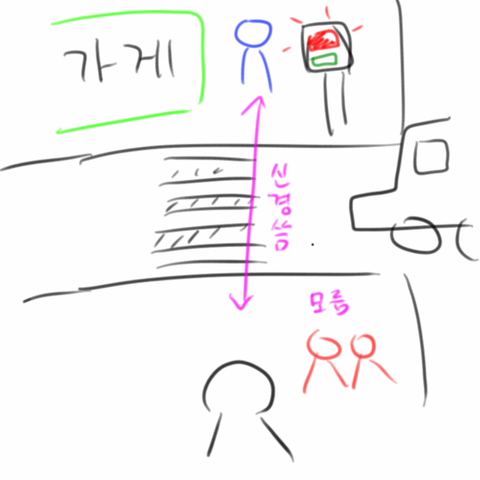 조금 걷다가 황단보도가 나왔는데 그 분이 무단횡단 해서 먼저 건너가시더니 편의점 앞에서 딴짓하는척 애들이랑 있는쪽 쳐다보시더라구요. 또 눈마주쳤습니다...