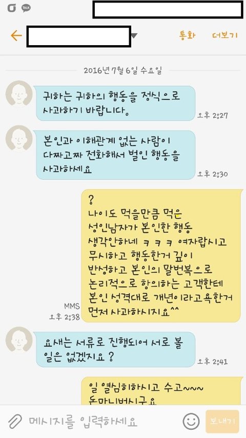4. 전화로 항의하자 욕하고 끊어버린 후 적반하장으로 고소하겠다며 되려 협박
