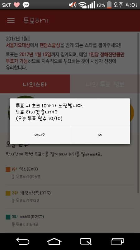 10표 다 하면 좋지만 용량이 없거나 사정이 있는 캐럿들은 기본제공되는 5개라도 투표 해주라 ㅠㅠ