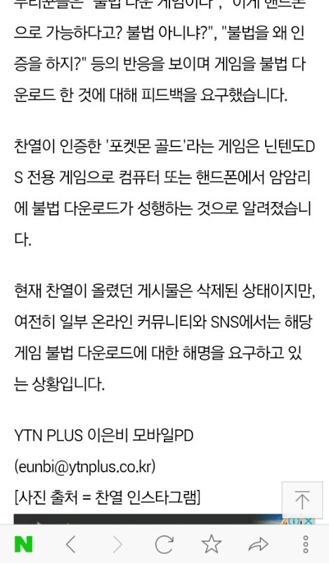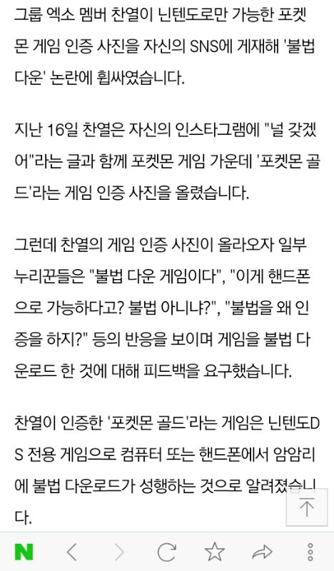 엑소 찬열 포켓몬 닌텐도 불법 다운로드 인증글을 본인이 본인 인스타에 올렸다가 현제는 삭제 상태