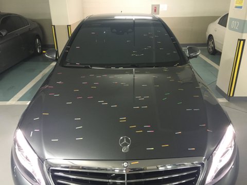 이러한 흰색 페인트 가루가 위의 사진처럼 차량 전체에 도포되어 있다고 보시면 됩니다.