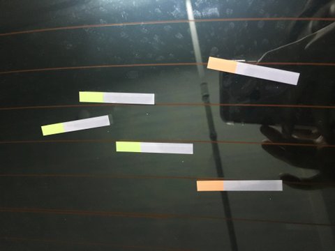 차량 사진입니다. 페인트 가루가 있는 곳에 포스트잇으로 표시를 해 둔거에요.