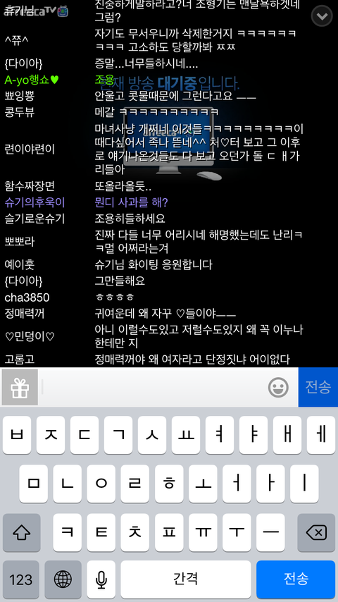 오늘 방송하길래 들어가봤는데 채팅창도 장난아니고