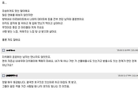 저는 데이트 비용 내는 게 남녀 평등 뭐 그런 측면에서도 맞다고 생각했고