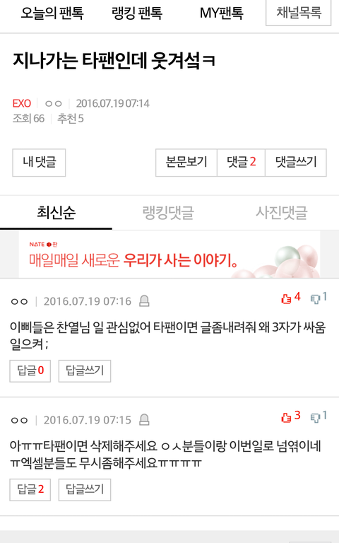 엑소 욕먹을 때 댓글에 여돌 이야기 있는 거 졸라 웃기지 않냐
