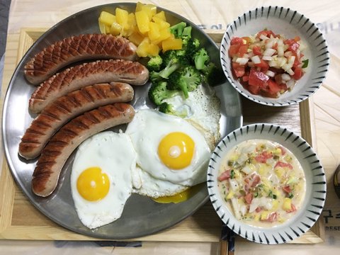 이건 뜬금없이 건강해보이지만 신랑이 차려주는 아침밥상이에요
