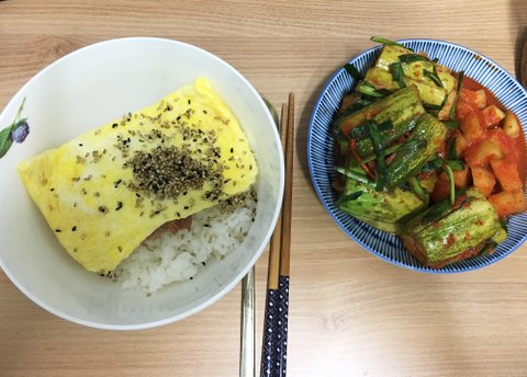담백하게 장조림계란밥. (옆의 오이소박이와 깍두기는 제가..*-_-*)