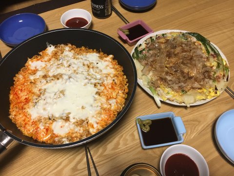 불닭볶음면에 신랑표 파전으로 챱챱ㅋㅋㅋ