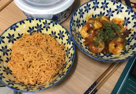 당장 어제먹은 쿨!불닭볶음면(짱맛.ㅠㅠㅠㅠ)이랑 매운칠리새우!