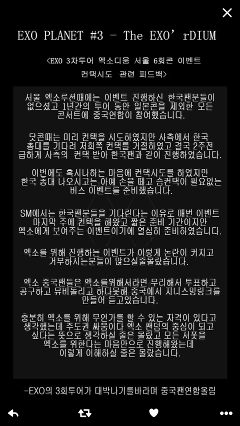 그리고 ㅅㅂ우리 앨범암사고 스밍투표안하냐? 꼭 지들만 하는줄알아 ㅈㄴ지들이 갑이지ㅋㅋㅋㅋㅋㅋㅋ 슬로건이 엎어지건말건 어쨋든 한국콘이고 우리가 해야되는게맞음 지들이 혹시나해서 컨택한게 잘못된거야ㅋㅋㅋㅋ 콘서트위에 슬로건있는거 아니고 안해도 되는문제인데 꼭 사서나대요진짜..;;