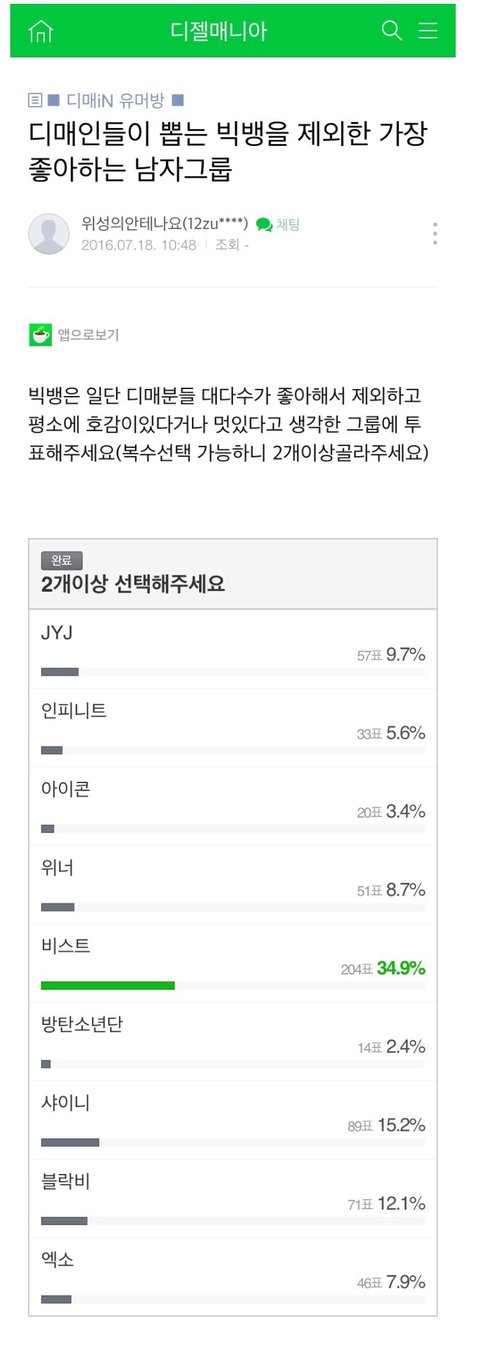 최근 남초사이트 남자아이돌 인기 순위