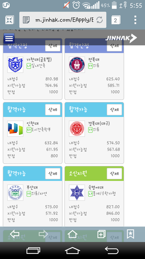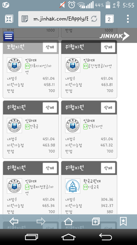 사진은 진학사에서 제 6월 성적 넣고 돌린거
