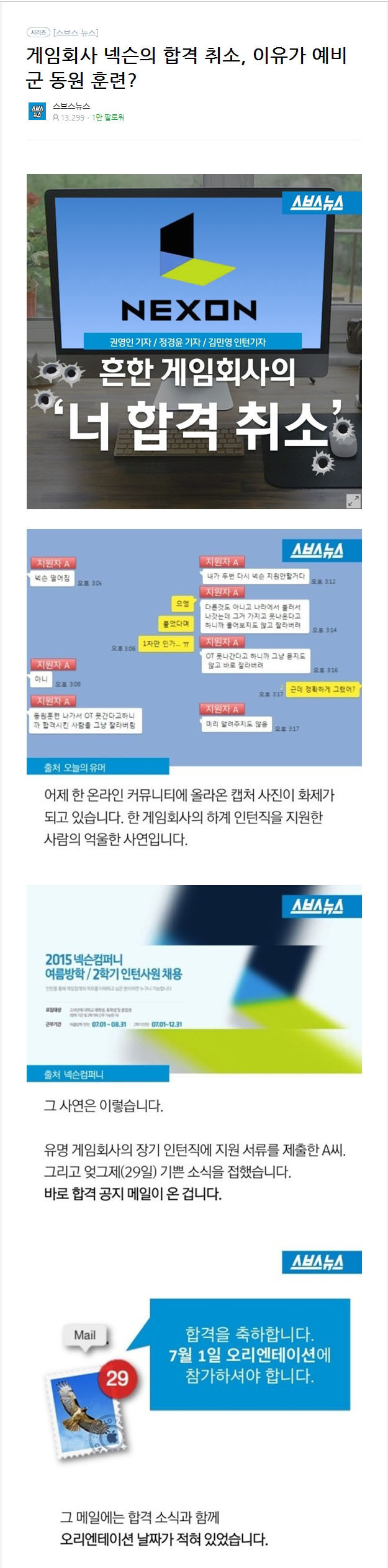넥슨 합격자의 합격 취소 사유