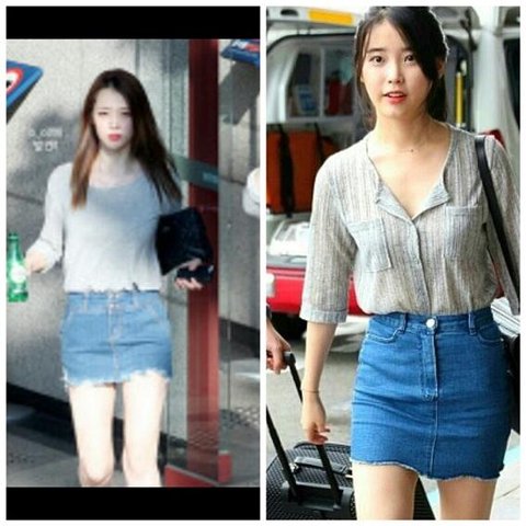 평소 청치마를 사랑하는 아이유는 거의 매일 청치마만 입고다니고 상의는 원래 바꿔입고 다니다 저 가디건티를 입은날 사진을 안티가 악용한거. 청치마에 매치한 엄청난 종류의 상의 중 딱 한번 옷 색깔이 비슷하다고 까지말자.
