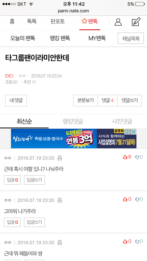 오늘의 팬톡