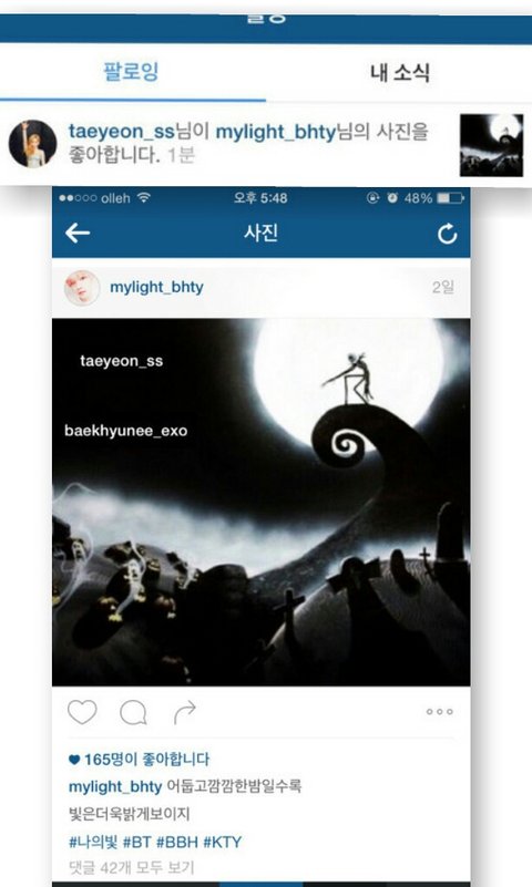 태연 실수로 백현영상에 좋아요 누름