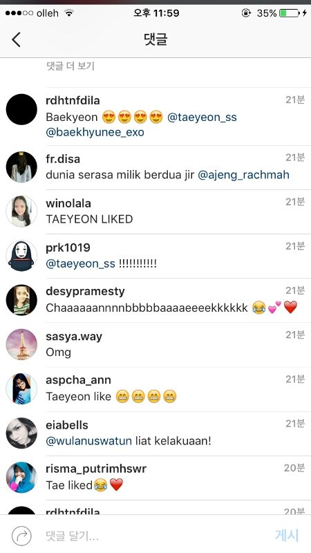 팬들앞에서는 헤어진척 쇼하더니 오늘 태연이 백현 영상에 좋아요 눌렀음ㅋㅋㅋㅋㅋㅋ