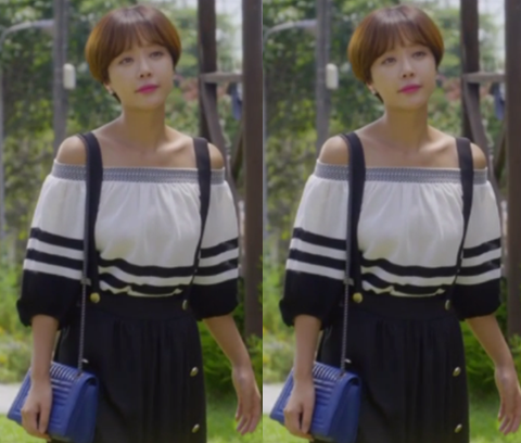 어깨 다 드러낸 오프숄더에 쿠론 새턴 클러치 딱 걸쳐메니