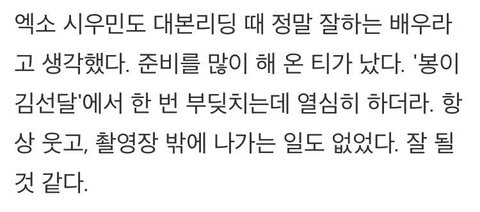 민석이 칭찬해주셔서 너무 감사하다~ 조재현님도 연기 진짜 너무 잘하셨었는데~ 같이 연기했던 선배님한테 민석이가 자주 좋은 말 들으니까 나까지 즐거워~ㅎㅎ