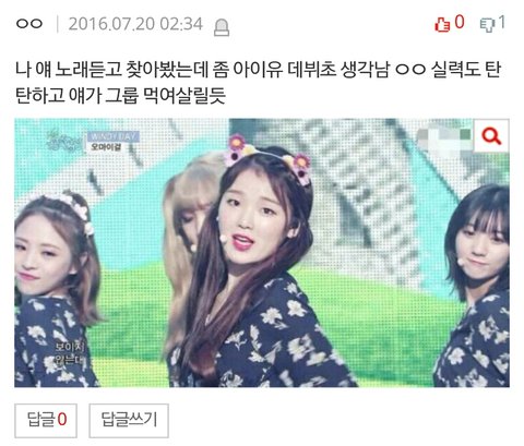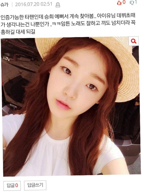 ㄹㅇㅋㄱㄱㄱ무슨 아이유 데뷔초모습임 아이유가 데뷔초때 후덕했어도 쟤만큼 빻진않았닼ㄱㄱㄱㄱ 비교할걸 비교하셈^^~ 판에서 아무리 아이유가 설리에 비교되면서 까여도, 승희랑 비교할급이되나?ㅎ