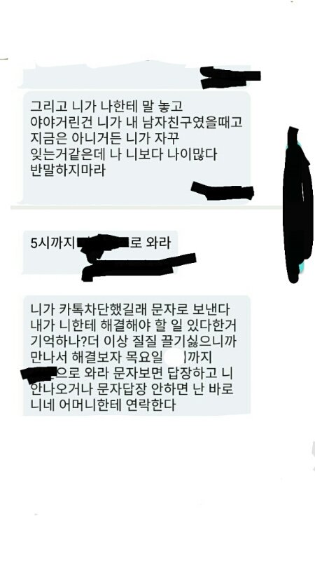 전여친이 한달전에 헤어졌는데 헤어지는 당일날도 그렇고 사귈때도 그렇고 집착이 엄청 심했는데 헤어진지 거의 한달 다되가는 바로 최근에 갑자기 문자로 카x차단해서 이렇게 보낸다면서 갑자기 자기랑 헤어진 날에 자기랑 나랑 해결할 일이 있다고 한거 기억 나냐면서 더 질질 끌기도 싫으니 내일 어디에서 몇시까지 보자고 통보식으로 얘기하면서 안오면 니네 엄마한테 얘기할테니 니 알아서 처신해라는 식의 문자를 남기대? 근데 나랑 걔 분명 헤어진 날에 깨끗하게 헤어지기로 서로 분명히 약속했었고 해결할 일이라는 것에 대해서는 헤어지자 한 날에 자기가 나한테 사실 아무 일도 아닌데 그냥 붙잡고 싶어서 이렇게 해야겠다 싶어서 불렀다 이런식으로 얘길 하면서 제대로 얘기도 안하고 하길래 그래도 헤어지자는 말엔 전여친도 동의 했으니 별일 없겠지 싶었는데 이런 일이 생겼어 안그래도 스트레스 받을 일 많았는데 이런 문자도 받으니 평소 앓던 과호흡도 재발해서 엊그제 응급실에 다녀왔는데 이거 진짜 협박죄 같은거로 신고 못하나? 아니 하다못해 나한테 접근불가 신청 못하나?? 너무 스트레스받고 미칠거같아