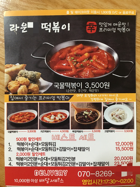 신촌 근처에 있는 라운* 떡볶이에서 음식주문했어요