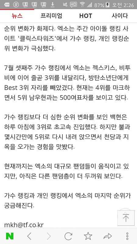 물론그다지필요는없지만 백현치면이기사먼저 뜨는게 기분나쁨 현재3위야