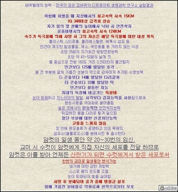 바퀴벌레의 스펙