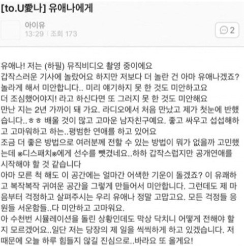 아이유의 열애인정글이다 팬들 걱정하고 팬들에게 미안해하는 마음이 딱 드러남