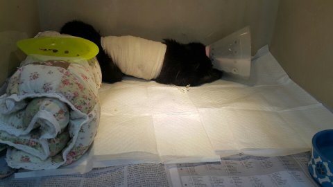 처음엔 인지를 못하고 그저 아이가 뒷다리를 불편하게 엎드려 있길래 간호사분께