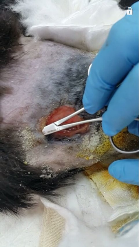 살과 근육이 분리가 되어 겸자 가위 반 정도가 들어가는 상황입니다.