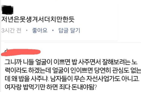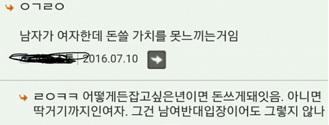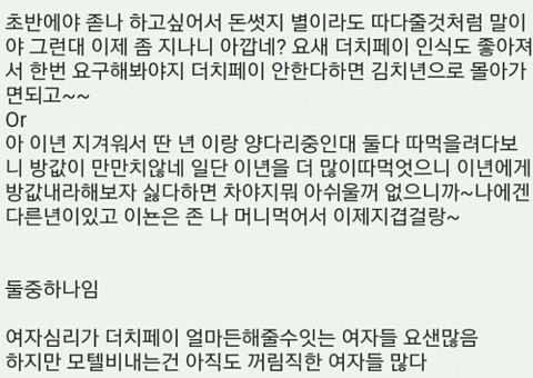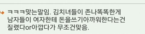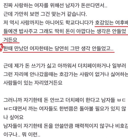 근데 더치페이 안하면 애인을 무개념으로 몰아가는 몰상식 남자들이 종종 있어서