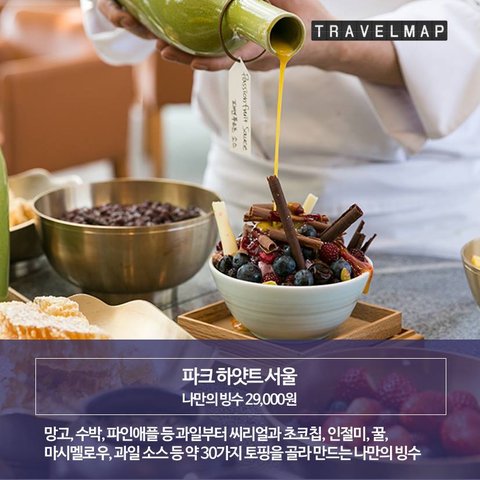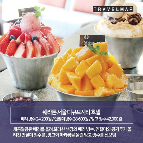 여름을 달콤하게 즐기는 방법 유명 셰프와 파티셰가 만든 빙수부터금가루와 샴페인이 들어간 특별한 빙수까지! 빙수와 함께 달달한 휴식을 취하고 싶다면 특급호텔로 출발~