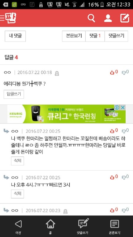 댓 쓴 애 되면 ㅈㅂ 좀 햐줘