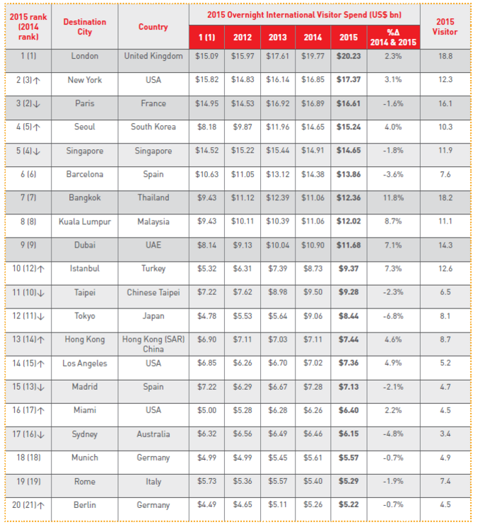 세계 도시별 관광 수입