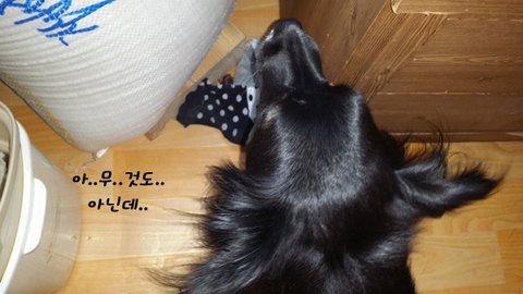 그 양말로 집안 구석구석 간식 숨기기