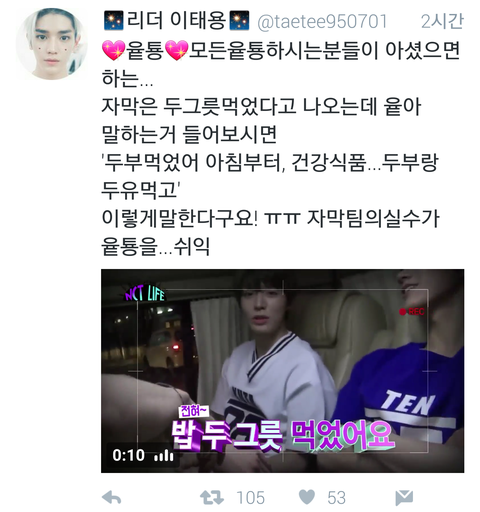 태용이가 안챙겨줘서 아침부터 두부먹었다는 말을 두그릇 먹었다고 ㅜㅜ