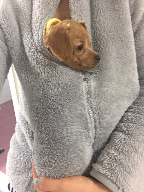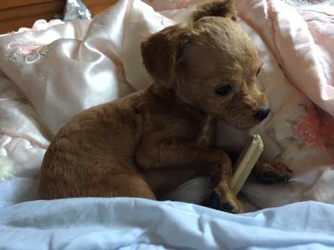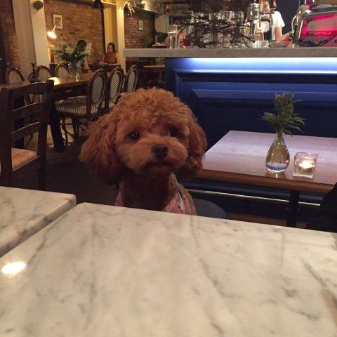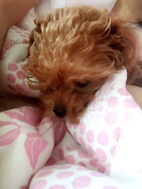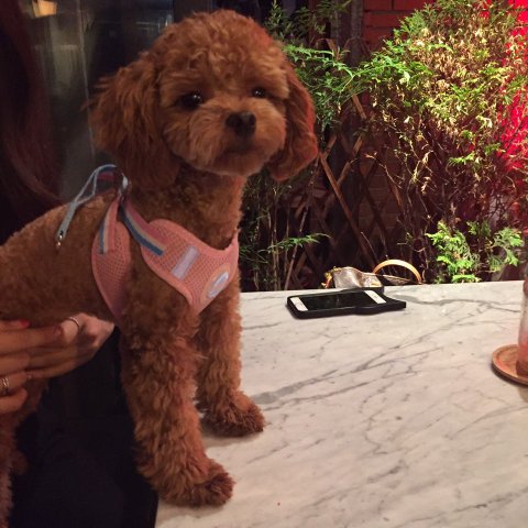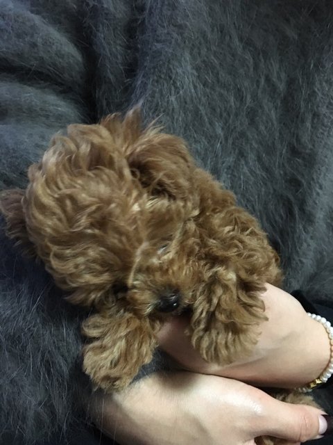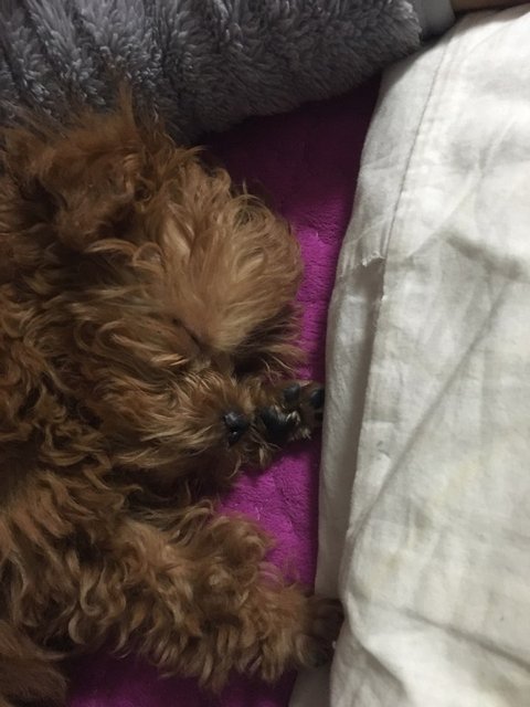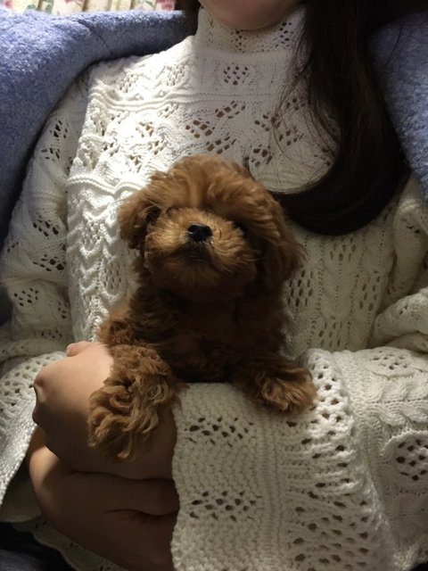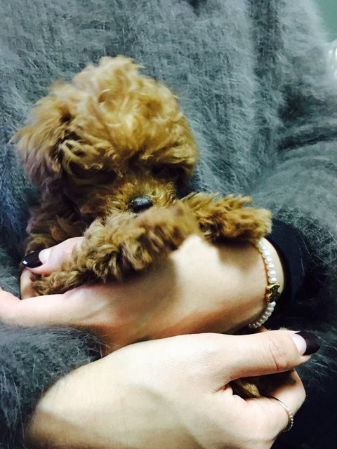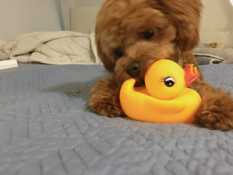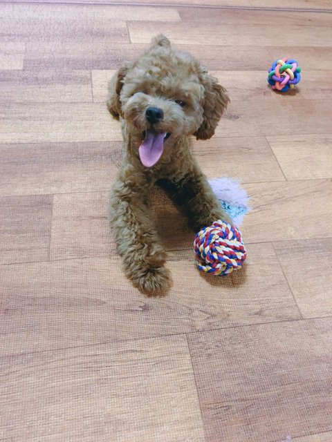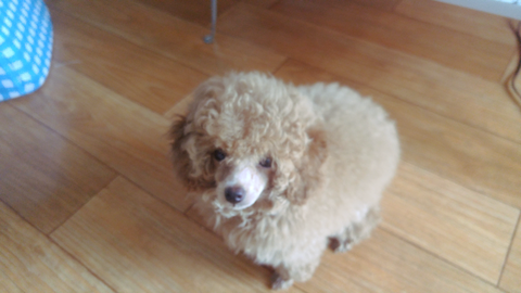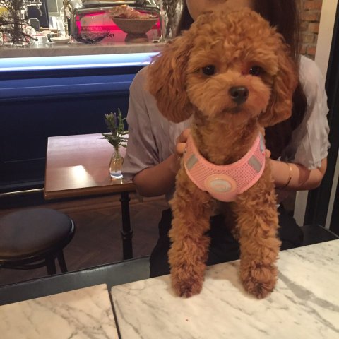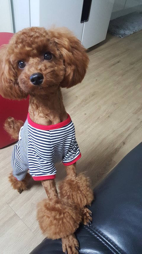 갈색 토이 푸들 모카예요.
