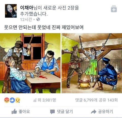 저년은 이채아라고 6.25때 돌아가신 군사님들을 모욕하고 일베충에 메갈 대갈텅이 빈 여자아이입니다 설리를 조금 닮긴했지만 인스타나 페이스북에서 자신이 핸콕╋설리라 굳게 믿고있습니다..허언증이죠