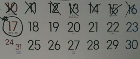 내가 중요한 날은 동그라미하고 별표치고 날마다 X표치거든 근데 원우 생일부터 그게 끊겼어ㅠㅠㅠ 내가 영원히 원우 생일로 멈추고 싶나봐ㅠㅠㅠㅠ 복덩어리 얼렁 나아라ㅠㅠㅠㅠ