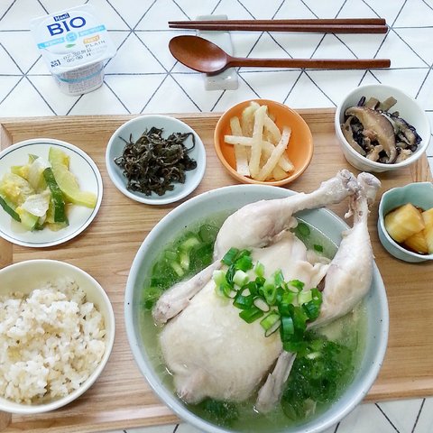 초복에 아침으로 먹은 식단입니다. 이날은 냄비 두 개에 닭을 나눠서 푹 끓여 줬어요. 1인 1닭을 목표로 삼았지만 동생(철이)은 1인 1.5닭을 하였습니다.