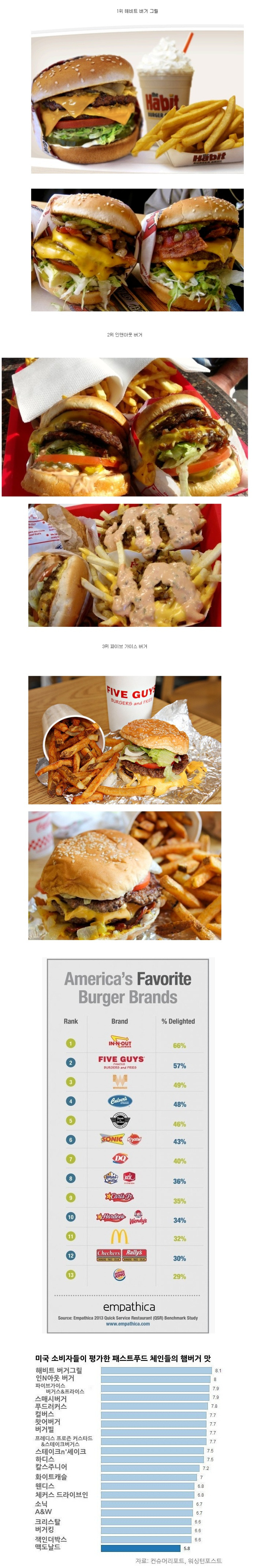 미국 햄버거 랭킹 1,2,3위