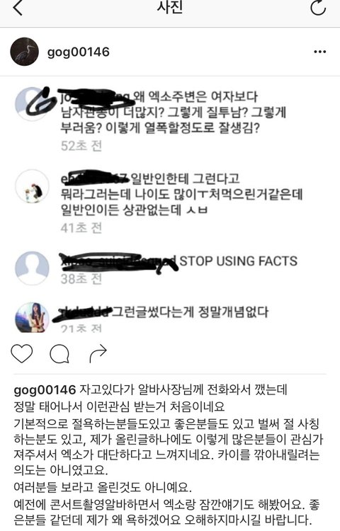 팬들은 엑소 저격하는거라고 일부로 보라고 엑소 태그 건걸로 취급하던데 쌩일반인이 그런 거까지 알겠냔 말임 내말은..