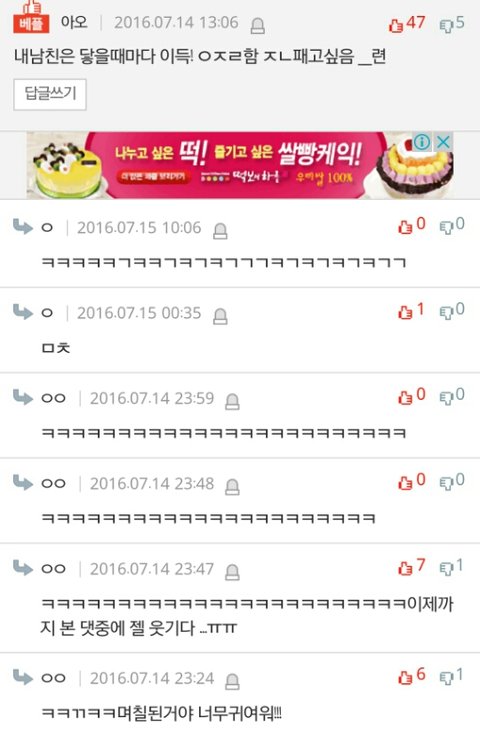 글이 남친하고 팔짱끼면 슴7ㅏ 닿았을때 좀 그렇지않냐니까 댓글에ㅋㅋㅋㅋㅋㄱㅋㅋㅋ시밬ㅋㅋㅋㅋㄱㅋㅋ