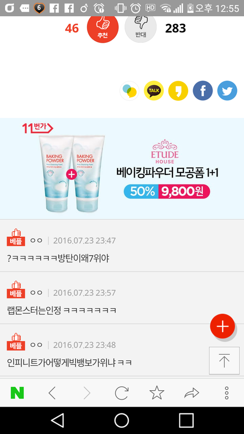 엔톡에 남돌 얼굴순위매기는 별 ㅂㅅ같은게올라와있었음 근데 우리가 ㅂㅂ님들보다 위에있었는데 세번째 베플에 이런게올라옴