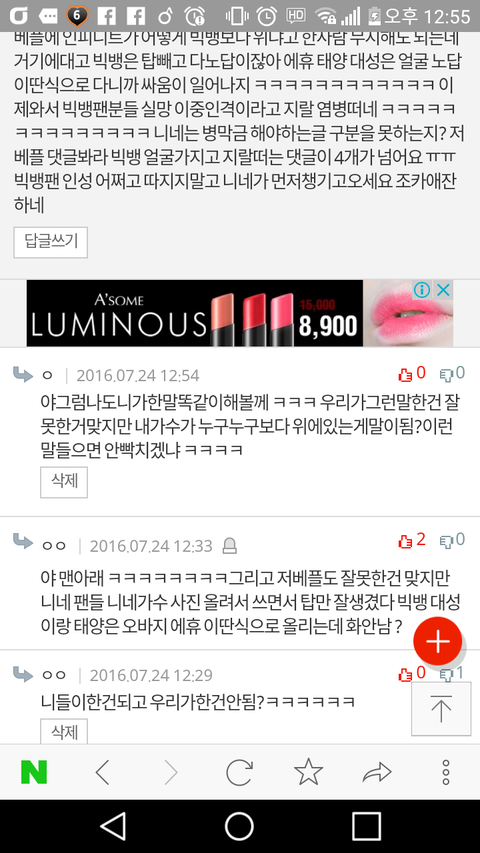 근데 그댓글에 누가 ㅂㅂ에 한멤버분 외모비하하고 누구빼고 다 ㅂㄹ란식으로 댓글달아서 지금 댓글보면 다 인스피릿수준알고간다 이런식으로 우리가욕먹고있음 근데 생각해보니까 엄연히 지들이먼저벌려놓은판이면서 욕이란욕은우리가다먹음 그래서내가