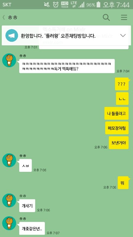 개 시4발 걸1레년아 갑자기 욕하고 자랄이야 빡치네